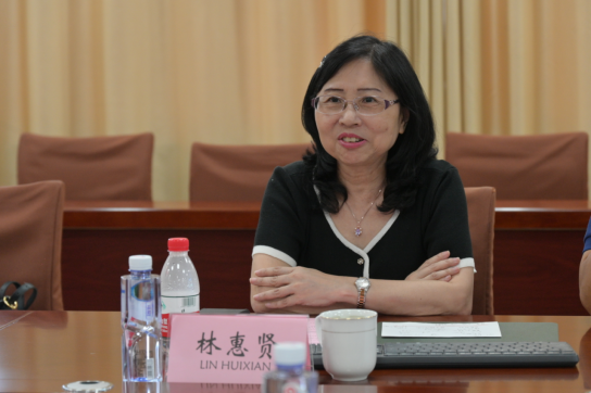 林惠贤感谢学校的热情接待。她着重介绍了辅英科技大学的院系设置、发展规划、办学特色等,她表示,两校在健康照护、教育等专业领域合作空间广阔,希望通过不同形式的互动模式来加深两校的合作,增进彼此友谊。