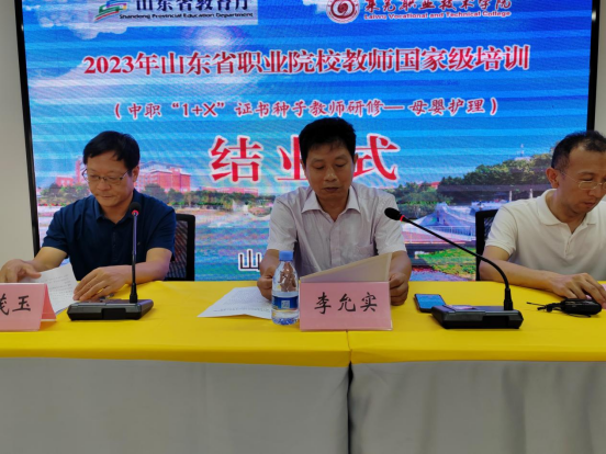 李允实首先祝贺全体参训教师圆满完成培训任务,对参与授课的全体专家表示感谢,对教师企业实践合作企业的支持和配合给予高度肯定。他对本次培训承办工作进行了系统梳理和总结,他指出学校作为国培、省培和济南市双师型教师培训基地,将不断优化培训方案和教学计划,聘请教学名师,做好校企衔接,让教师培训落到实处、干出实效;同时,进一步提升管理和服务水平,全力为参训教师提供更加优质高效的服务。他希望参训教师以本次培训为契机,树立终身学习理念,加强联系,保持沟通与交流,发挥本次培训平台的最大效用,进一步加强职业教育新理念、新思想的学习,不断开创职业教育新局面。