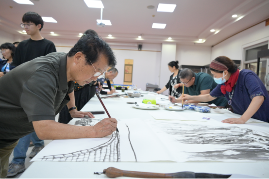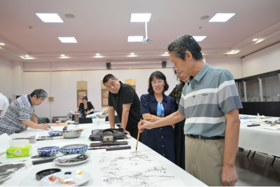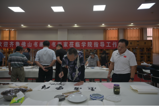 随后,齐鲁佛山书画院书画家与学校书画教师共同创作书画作品,探讨继承、弘扬中华优秀传统文化经验做法,交流书画创作心得体会。