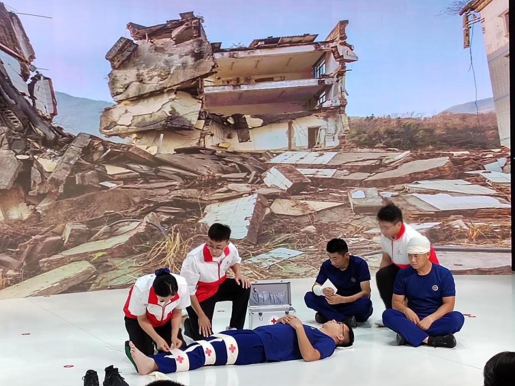 启动仪式上,学校医学技术与护理系应急救护志愿服务队通过模拟地震灾害现场,演练了情景式应急救护技能。演练中,应急救护志愿服务队队员对伤员进行了心肺复苏和AED除颤以及现场创伤包扎。此次演练营造了“人人学急救、人人会急救、人人敢急救”的良好氛围,让更多人了解了应急救护知识和技能,并且能够参与到应急救护中来,合力筑牢守护人民群众生命安全的防线。