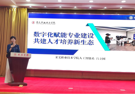 会上,人工智能系负责人宫立圆以“数字化赋能专业建设 共建人才培养新生态”为题做典型发言,围绕强省会建设、服务区域经济发展、企业数字化转型,就学校基本情况、人工智能系专业建设、人才培养体系成效、数字化赋能企业做法等方面进行阐述。她表示,人工智能系将一如既往投身建设教育强国、科技强国、人才强国的宏伟实践中,大力推进产教融合、校企合作,与莱芜区行业企业携手共建,以数字化赋能企业转型。