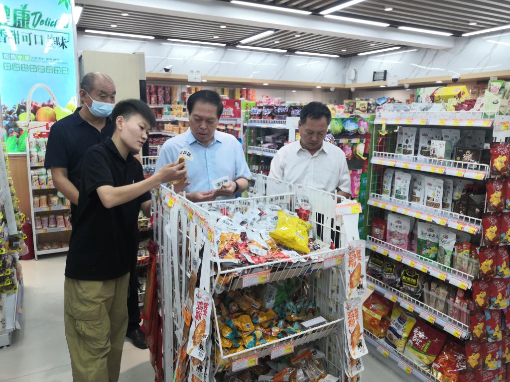 在食堂,徐运国分别从原材料采购、仓储、菜品加工、食品留样、餐具清洗消毒等方面进行了详细检查;在超市,他仔细查看水果加工和保存、水果价格、预包装食品生产日期等。