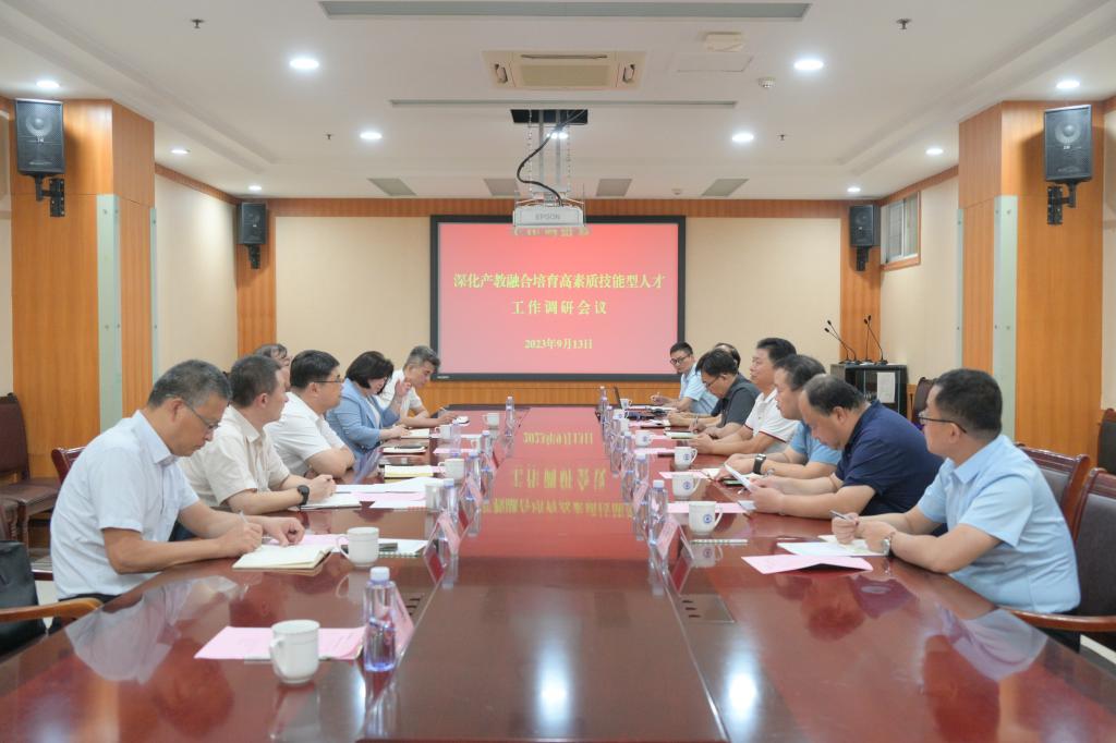李允实向调研组介绍了学校的基本情况,特别是在深化融合和人才培养方面的成果。智能制造系主任宋健汇报了学校工业互联网产业人才公共实训基地运营情况。