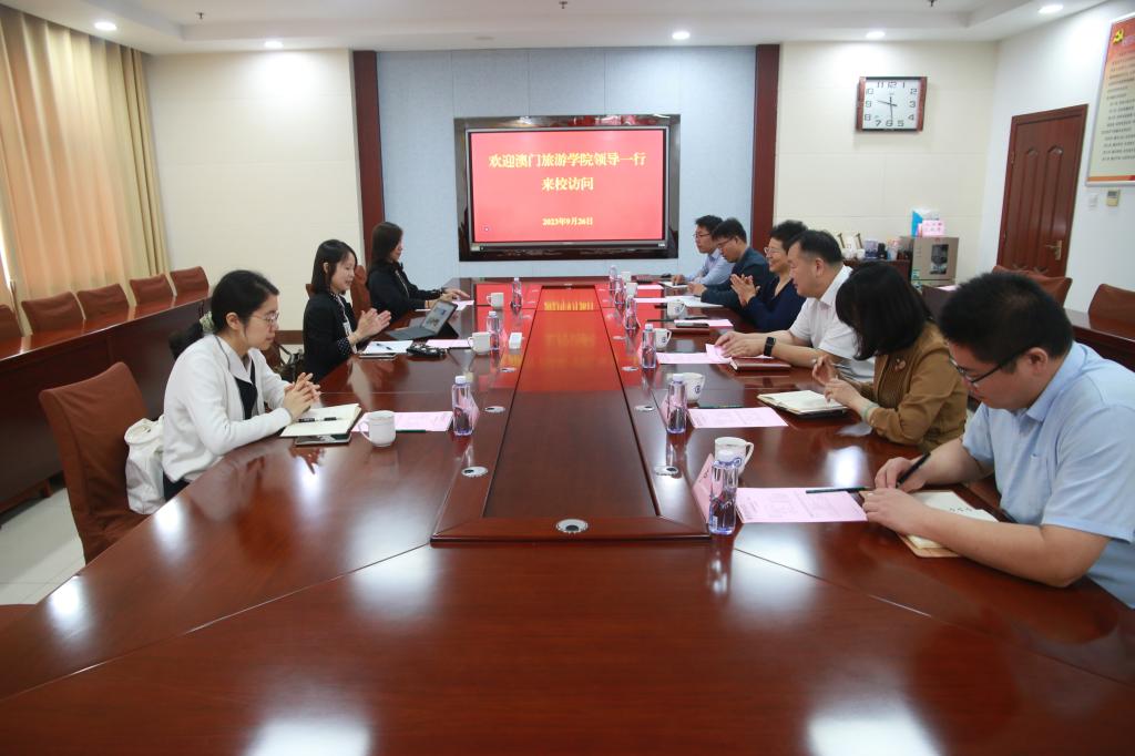 9月26日上午,澳门旅游学院教务长林宝玉一行来校访问交流。党委副书记、院长徐运国热情接待来宾,纪委书记、监察专员付萍主持座谈会,党委组织部、对外交流合作处、教务处、智慧商贸与旅游系、文物与艺术系相关负责同志参加座谈会。