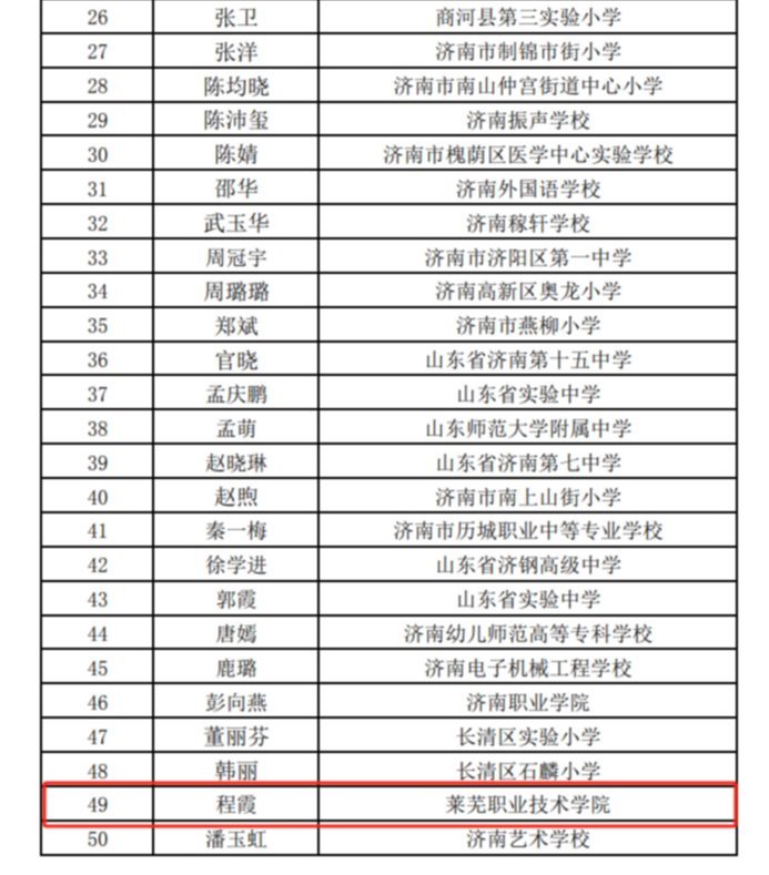 近日,济南市教育局公示了第二期“立德树人双领军团队”名单,思政部教师程霞顺利入选学科教师人选名单。