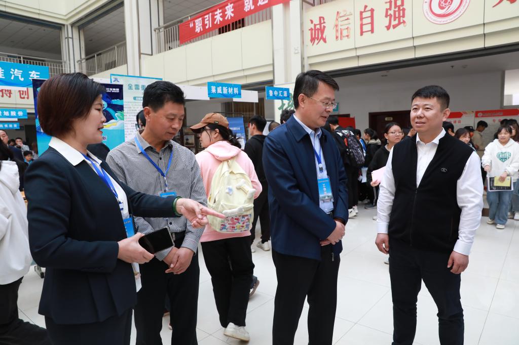 招聘会现场摩肩接踵,气氛热烈,秩序井然。党委书记孔祥敏,副院长李允实、邹翠兰一行来到招聘会现场指导工作。孔祥敏与多家企业代表进行了面对面交流,了解用人单位发展、人才需求、招聘条件和薪资待遇情况,对用人单位长期以来给予学校人才培养和就业工作的大力支持表示感谢。他向用人单位介绍学校毕业生整体情况,希望参会企业强化引人、留人、用人效应,在和学校现有合作的基础上进一步加强联系,不断取得新的成效。