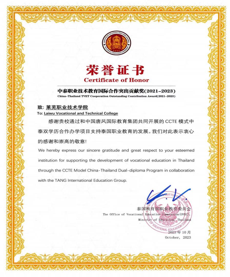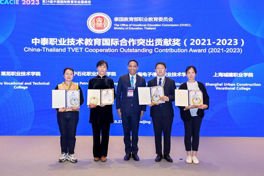 10月26日—28日,第24届中国国际教育年会在北京召开,共有来自全球60余个国家和地区的近5000名中外教育界人士、驻华使领馆官员和企业代表等参加。在本届大会上,学校荣获“中泰职业技术教育国际合作突出贡献奖”。