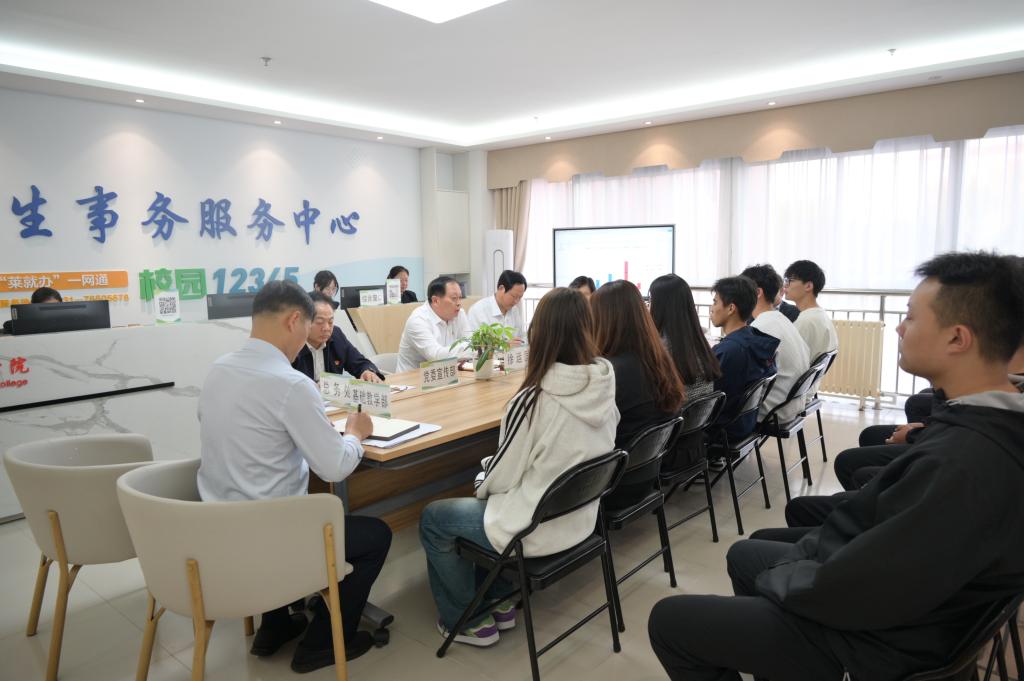 徐运国肯定了同学们关心关注学校建设发展的积极态度,希望同学们继续发挥“莱职人”的主人翁精神,为学校发展积极建言献策。他指出,“校长接待日”是学校推动治理能力和治理体系现代化,畅通学生与校领导对话渠道的有效举措,要常态化开展多层级、多形式的与学生面对面交流活动,真心倾听学生诉求,做好沟通反馈和答疑解惑工作,及时推进问题的办理和落实。他倡议同学们要珍惜有限的学习时间,积极参加实践活动,多参加体育锻炼,脚踏实地,知行合一,提升综合素质,努力在德智体美劳方面全面发展。他强调,学校将继续坚持问题导向,充分发扬民主,优化学校管理,提升管理效能,切实在解决实际问题中推动学校高质量发展。