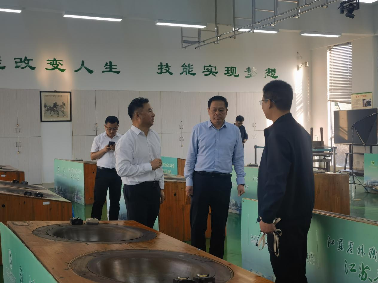 徐运国一行在江苏农林职业技术学院党委副书记、院长潘永圣陪同下先后考察了江苏农林职业技术学院两大校内实训基地——江苏农博园和江苏茶博园,详细了解江苏农林职业技术学院在政校行企联合办学体制机制建设、科研创新及成果转化、服务乡村振兴等方面的先进经验。