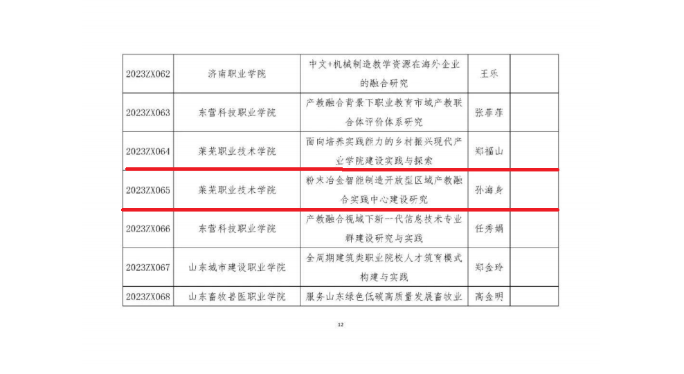 近日,山东省职业教育和产业人才研究院公布了《2023年度山东省职业教育和产业人才研究专项课题拟立项名单》,郑福山主持的《面向培养实践能力的乡村振兴现代产业学院建设实践与探索》,孙海身主持的《粉末冶金智能制造开放型区城产教融合实践中心建设研究》,狄俊锋主持的《产业升级背景下高职院校商贸专业群数字化转型研究与实践》等3个项目获批立项,且均为带资项目,立项数量和资助金额均位列全省高职院校前列。