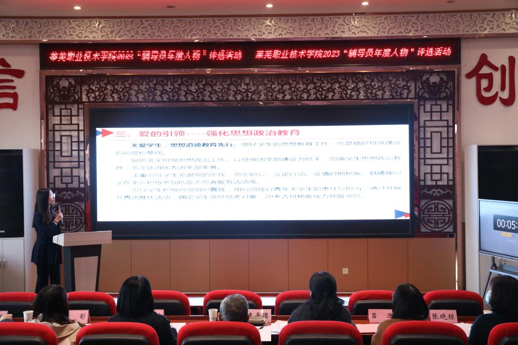 本次评选活动,共有17位辅导员入围“辅导员年度人物”候选人、16位班主任入围“十佳班主任”候选人。活动现场,“辅导员年度人物”候选人通过述职的形式汇报了个人在思想政治教育、学风建设、党团建设、就业指导、学生资助、日常管理等方面的工作情况。各系学生科长围绕班级管理方法、班级活动以及特色亮点等内容,对本系2名入围“十佳班主任”候选人的班级管理工作经验进行了介绍。