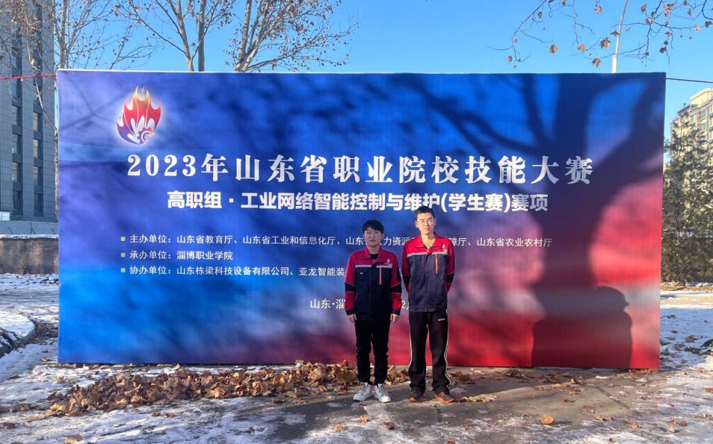 12月15日-16日,2023年山东省职业院校技能大赛“工业网络智能控制与维护”(学生赛)赛项在淄博职业学院举行,全省共44个代表队参加。智能制造系张婷、张恒老师指导的张茗川、刘宗壮两名学生代表学校参赛,荣获团队一等奖。