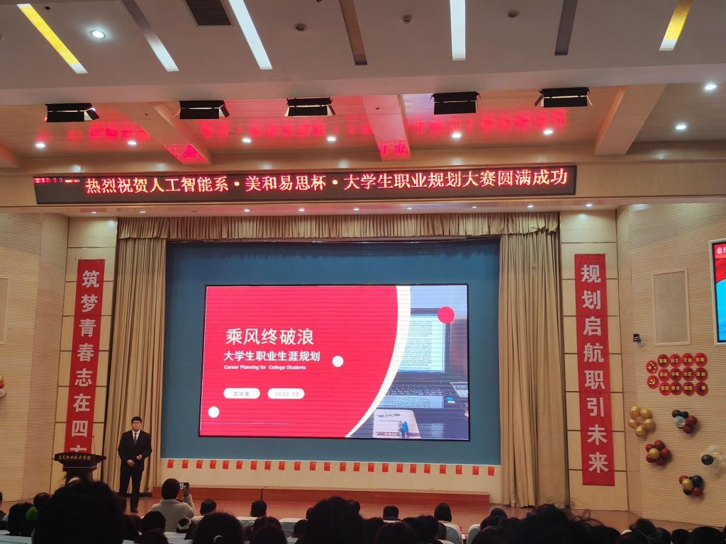 为增强大学生职业生涯规划意识,指导大学生科学合理地规划学业与职业发展,12月19日下午,人工智能系在图信中心报告厅举行大学生职业规划大赛决赛。本次大赛以“未来我来了”为主题,经过初赛、复赛层层选拔,共有8名优秀选手进入最后决赛。党委委员、副院长任清华,美和易思莱芜项目部经理王策和人工智能系负责人观看比赛。
