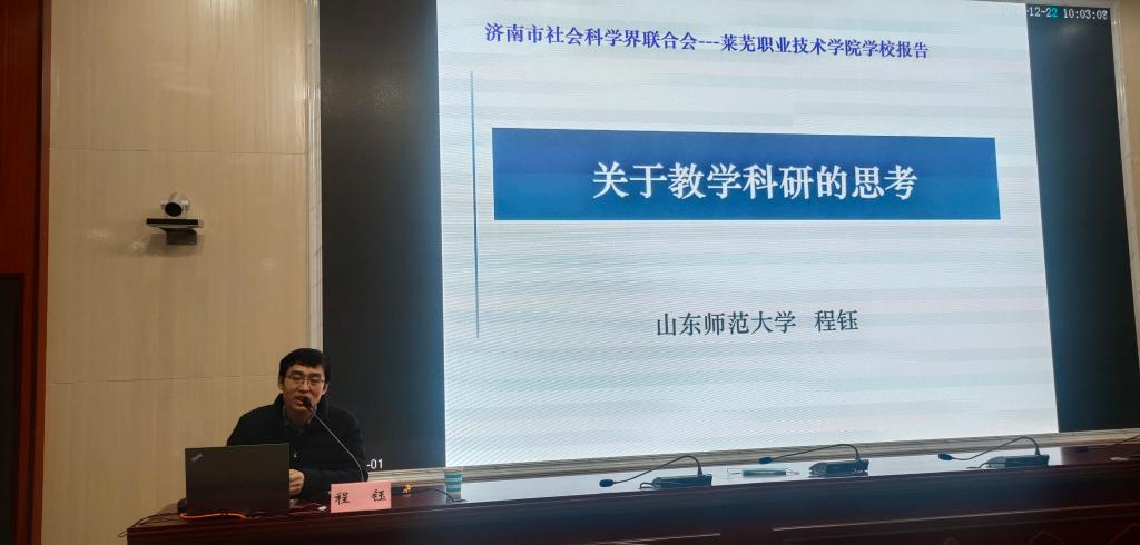 12月22日,山东师范大学地理与环境学院副院长程钰教授来校做专题培训指导,高等职业教育研究所、山东江河湿地生态研究院、思想政治工作创新研究中心等科研机构近百位骨干研究人员参与培训。