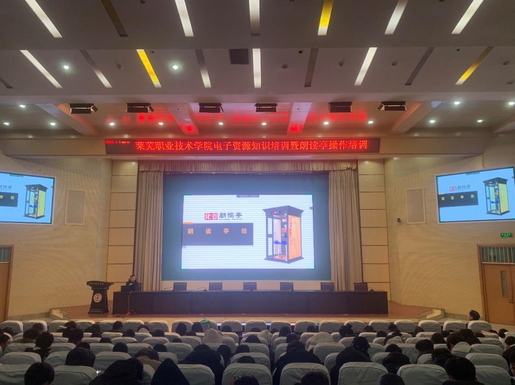 培训会上,首先朗读亭工程师对朗读亭的操作方法和如何参与朗读亭活动等进行了培训,并通过小视频让师生身临其境的体验朗读亭;接着,图书信息中心两位老师分别就学校智慧大厅、网络安全知识、图书馆资源、电子资源知识等进行了讲解,重点对学校引进的电子资源,依据学习场景分类,采用问答形式介绍,激发学生的学习兴趣,拓宽知识面,以期让电子资源有效成为师生科研与学习的好帮手。