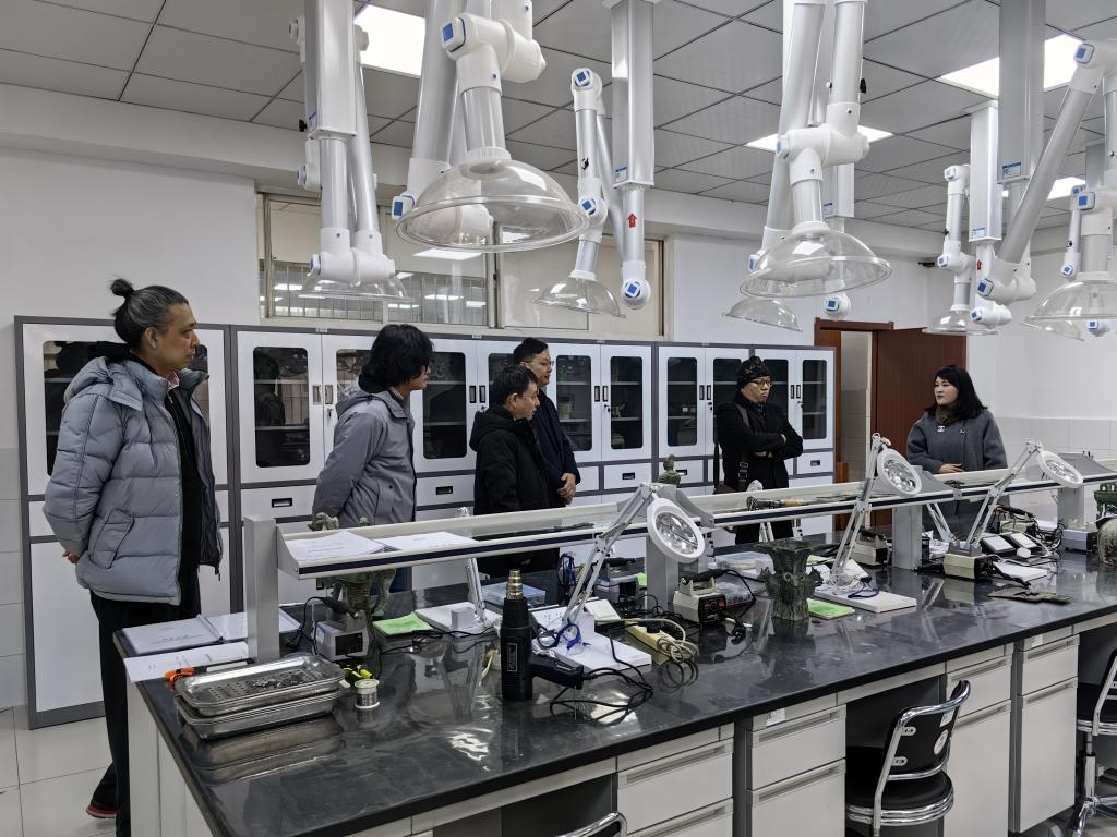 座谈会前,孙学东一行参观了文物与艺术系实训室,察看文物实训条件及建设情况。