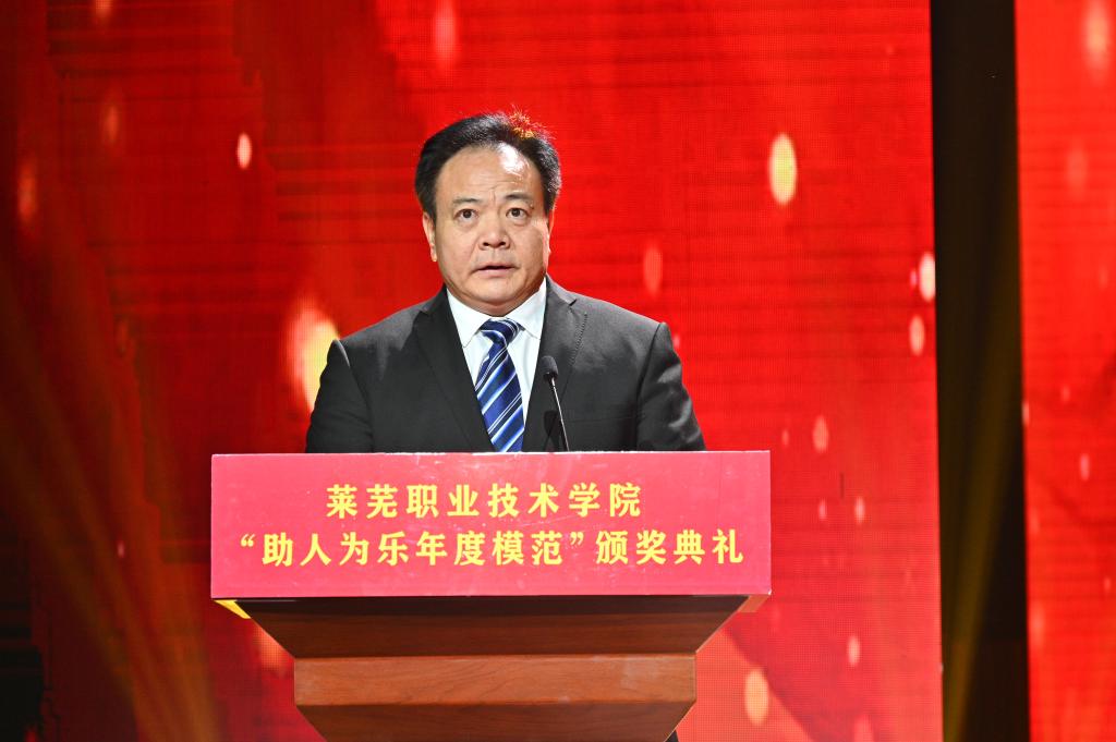 周美栋在颁奖致辞中表示,学校高度重视思想道德教育,秉承“感恩·赶超”校训,实施“尚德修身·砺志成才”教育工程,涌现出一大批道德模范人物和典型代表。他指出,当前学校正处于全力谋划争创高水平职业院校的关键时期,迫切需要更多的道德模范站出来、冲出来,凝聚力量、鼓舞士气,学校将以此次活动为契机,进一步发挥道德模范的价值引领和典型示范作用,引导每一个莱职人传承传统美德、弘扬时代精神,在全校形成学习模范、崇尚模范、关爱模范、争做模范的浓厚氛围。