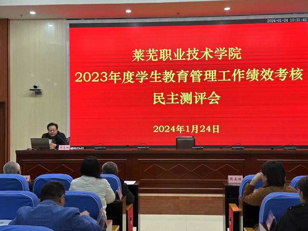 为全面总结2023年度学生教育管理工作,促进学生工作队伍对话交流、互学互鉴,1月24日,学校举行2023年度学生教育管理工作绩效考核民主测评会。党委委员、副院长周美栋、外聘专家李平德出席会议,各系负责人、副书记、学生科长和辅导员代表参加会议。
