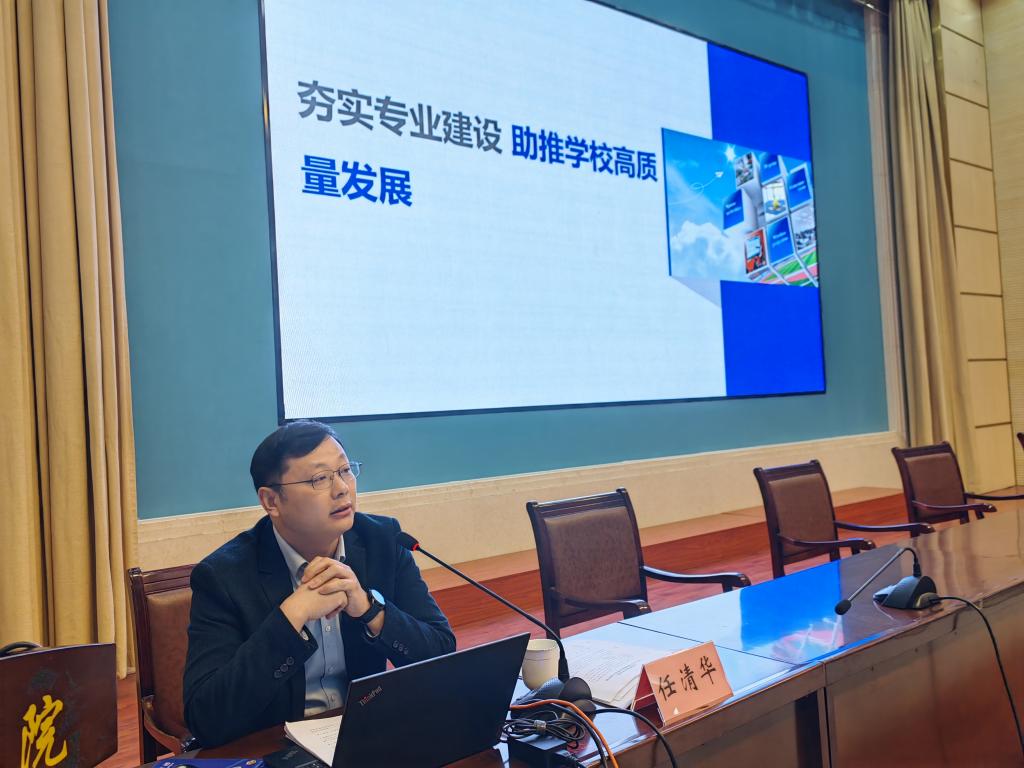 任清华作《夯实专业建设 助推学校高质量发展》主题报告。他从严格规范业务管理、强化常规工作落实,多措并举促进教学、提升人才培养质量,加强专业建设、服务经济发展,抓好重大项目建设工程、全面提高教育教学水平等四个方面对2024年教学工作进行了全面部署,确保学校2024年教学工作再上新台阶、再创新佳绩。