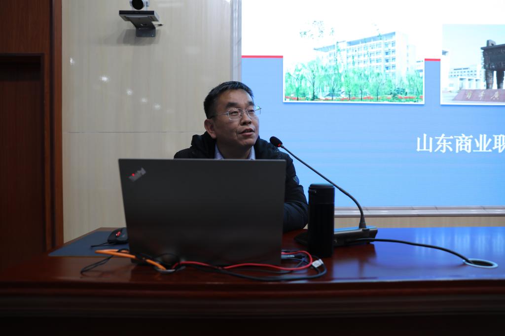 会议还邀请山东商业职业技术学院云计算学院院长国海涛作“双高校”争创工作经验分享。国海涛从“双高计划”申报组织、建设方案、建设申报总结思考等方面详细介绍了“双高校”工作的开展情况。报告既有对国家政策宏观的解读,也有多年深入的研究见解,具有较强的理论性政策性实践性,为学校争创“双高校”找准突破点、发力点提供了指导与借鉴。
