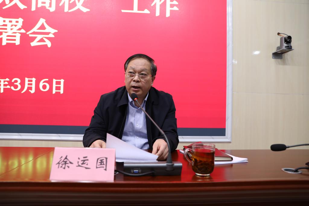 徐运国在主持会议时指出,争创国家“双高校”是贯彻落实党和国家职业教育改革发展方针政策的重大举措,是全面落实学校“1365行动”计划,推进学校高质量发展、跨越式发展的关键举措,也是学校增强核心竞争力、增强服务社会发展能力的有力举措。他表示,经过三年优质校建设,学校在人才培养质量、科研创新能力、服务社会能力和内部治理等方面实现大幅提升,但对照“双高计划”的标准,学校还存在着一定的差距和不足。他全面分析了学校在争创国家“双高校”当中的优势和不足,并强调,要提前谋划,保障到位,做好顶层设计,长远规划,持续推进建设,要坚持问题导向,注重效果,立足学校发展痛点难点,集思广益,集中调研,打通“中梗阻”,逐步形成反馈及时、整改及时、支持及时的长效建设机制,坚持任务到人,责任到岗,把各项工作落到实处、抓出实效,打好打赢争创国家“双高校”攻坚战,推动学校发展实现新突破、再上新台阶。