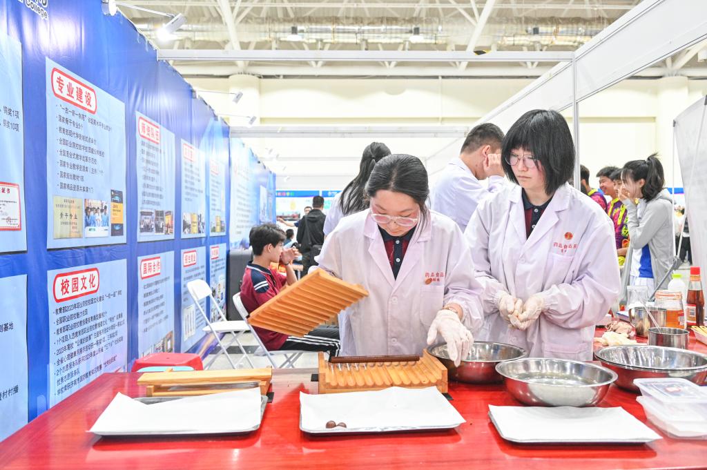 为传承中医药文化,药品食品系的师生现场制作山楂丸,引领观展人员感受中药传统手工技艺的魅力。草莓组培苗、草莓种苗展示了学校服务乡村振兴的新成果,通过培育优质草莓种苗,极大解决了种植户买苗难、买苗贵的问题。