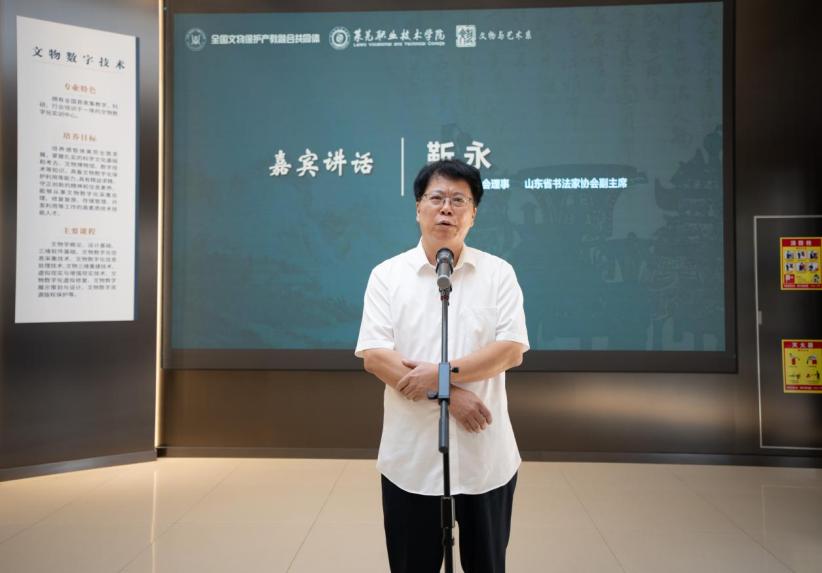 10月1日上午,“金石永固,朱墨华章——金石传拓与篆刻作品展”在学校文物与艺术系开幕。本次展览由全国文物保护产教融合共同体指导,学校主办,文物与艺术系承办。展期为期七天,集中呈现学校外聘教授吕夫永、文物与艺术系专业教师李萍萍在金石传拓与篆刻领域的精湛艺术成果,为文化遗产保护传承与职业教育文化育人提供生动实践样本。济南市莱芜区副区长韩冰,中国书法家协会理事、山东省书法家协会副主席靳永,学校党委副书记、院长徐运国出席开幕式。开幕式由文物与艺术系党支部书记、主任王金玲主持。