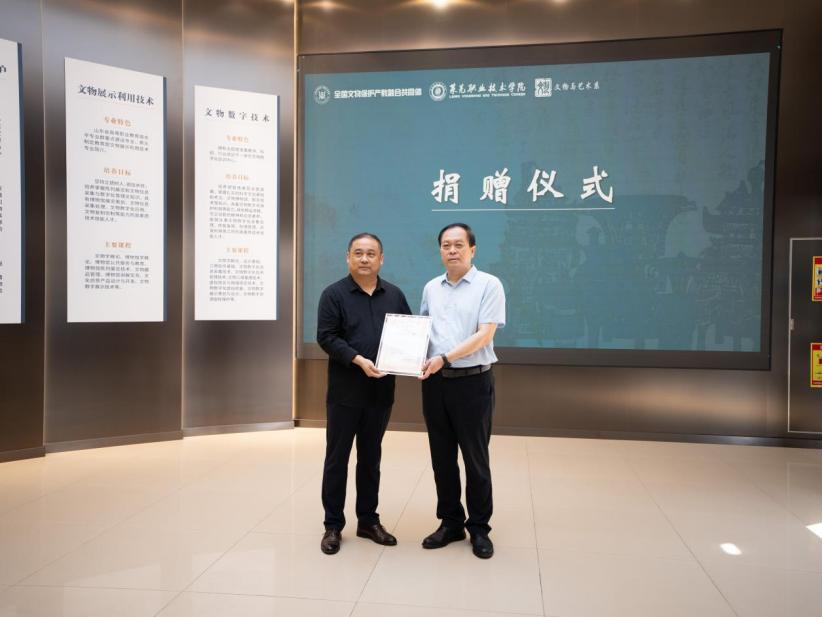 仪式上,吕夫永作为济南市祉斋拓片制作有限公司总经理,向学校捐赠千余件珍贵古器物及精品拓片。