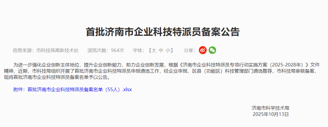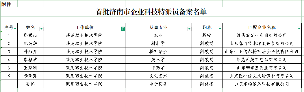 近日,济南市科学技术局发布了《首批济南市企业科技特派员备案公告》,公布了首批企业科技特派员名单。学校有七名教师成功入选,成为学校服务地方企业创新发展的重要力量。