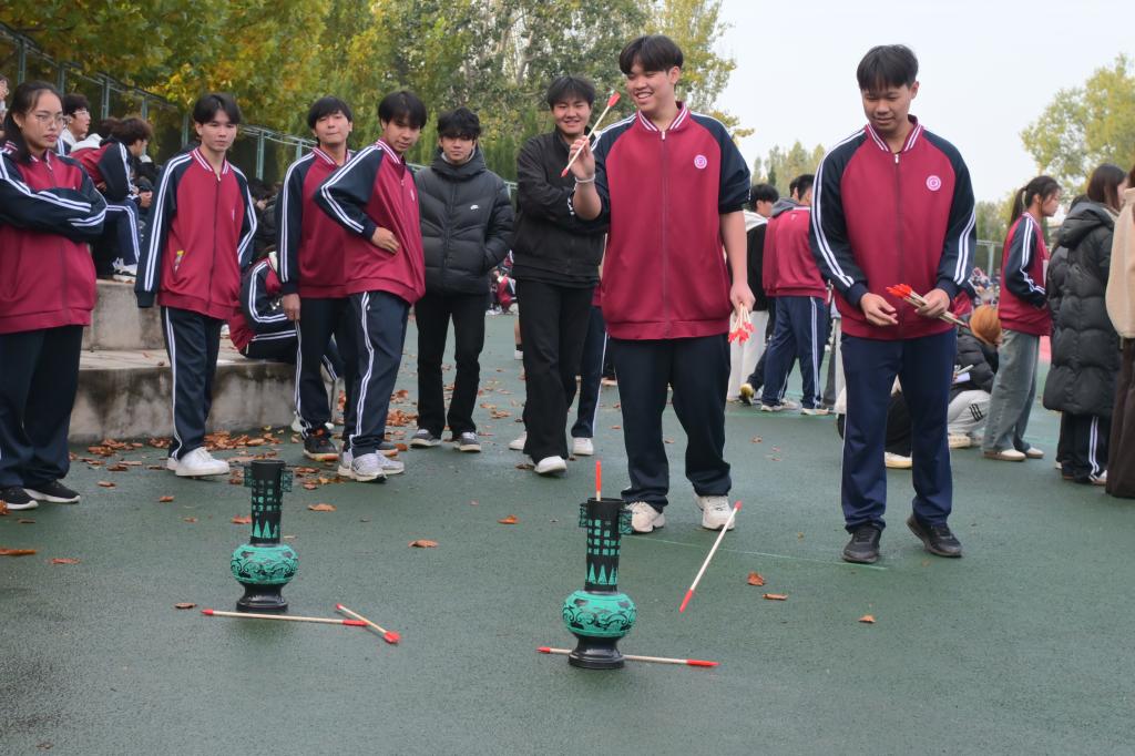 本届运动会共设置学生竞赛项目38个、教工竞赛项目33个,吸引763人次的学生运动员和311人次的教职工运动员积极参与比赛。各个竞赛项目有序进行,其中,学生男子铅球项目、女子10000米项目、男子1500米项目,刷新了校运动会记录。运动小火车、旋风跑、多人多足等趣味运动项目以其独特的挑战性,让每一位参与者都充分体验到了运动的乐趣与技巧。今年新增武术、踢毽子、投壶、鞋板竞速、射箭等5项非遗体育项目,既是对“体教融合”的创新探索,也是让学生近距离感受传统文化魅力的重要实践,让传统体育的魅力与青春活力在赛场交织,成为本次盛会的最大亮点。