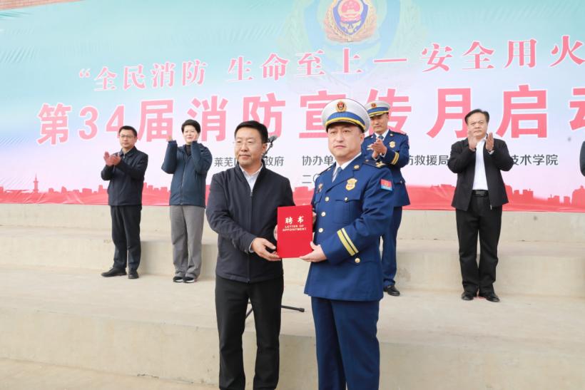 仪式上,杨洪涛为莱芜区消防救援大队大队长赵晖颁发聘书,正式聘任其担任学校安全工作名誉副院长。这是学校深化校地合作、共筑消防安全防线的重要举措,将为校园消防安全管理注入专业力量。