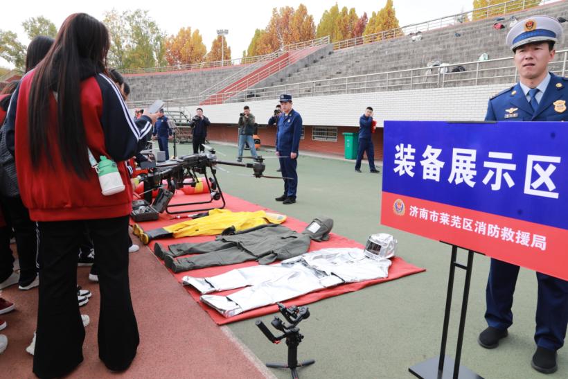 11月6日上午,莱芜区2025年消防安全宣传月启动仪式在学校操场举行。济南市市消防救援支队党委委员、副支队长尤胜,莱芜区委常委、副区长付华,莱芜区应急局党委书记、局长高立杰,莱芜区区委教育工委常务副书记,区教育和体育局党组书记、局长方威,学校党委副书记、院长杨洪涛,学校党委委员、副院长周美栋出席启动仪式。启动仪式由高立杰主持。