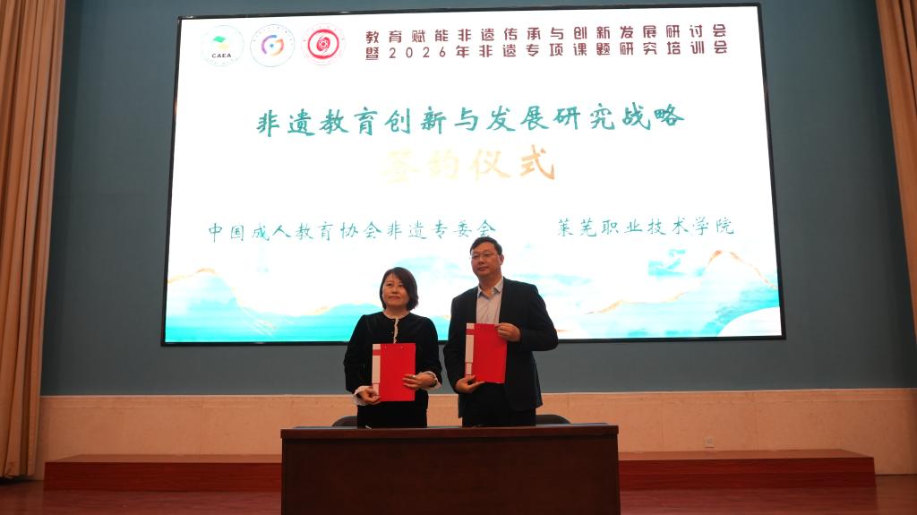 签约环节,张鹏飞与任清华共同签署非遗教育创新与发展研究战略,标志着双方在非遗人才联合培养、课题协同研究、资源共建共享等方面开启深度合作新篇章。