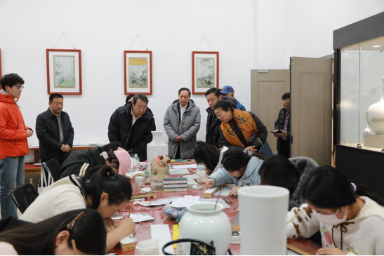 会前,在徐运国、周美栋等陪同下,宗同昌一行实地调研参观学校文物与艺术系实训室。