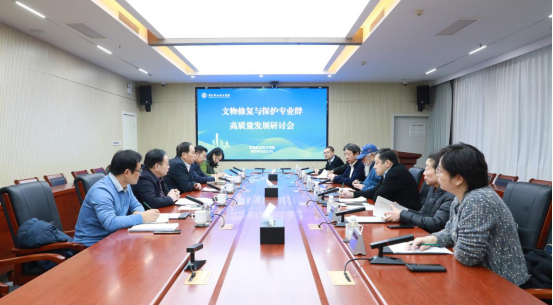 会上,潘爱华、韩志龙、赵亮豫与学校教务处、文物与艺术系相关负责人就文物修复与保护专业高质量发展展开深入交流和探讨。