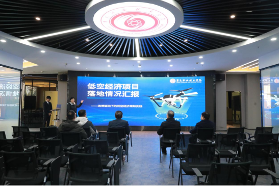 会前,杨兴才一行实地调研学校低空物流应用场景,并听取学校低空经济项目落地情况汇报。