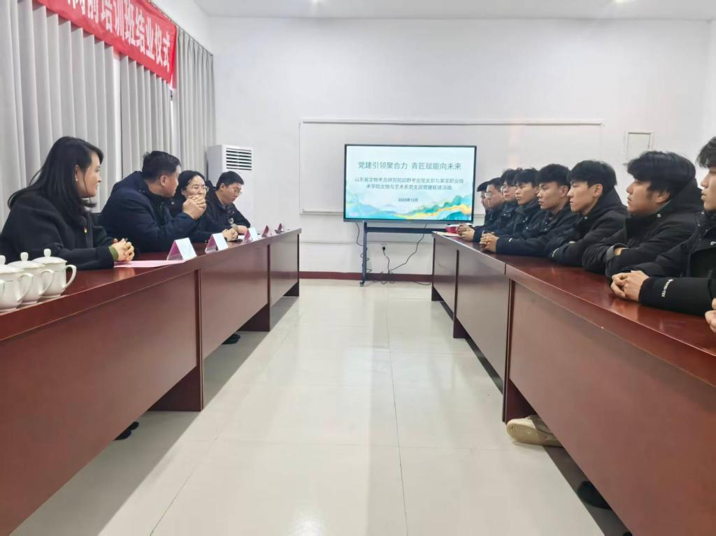 为深入贯彻落实党中央关于加强基层党组织建设和文化遗产保护传承的重要指示精神,以党建联建凝聚发展合力,以协同育人夯实人才根基,12月27日,学校文物与艺术系党支部与山东省文物考古研究院田野考古党支部,于滕州市张汪镇薛国故城考古工作站联合举办“党建引领聚合力 青匠赋能向未来”主题党建联建活动。学校党委委员、党委宣传部部长孙燕,山东省文物考古研究院专职副书记(主持工作)孔胜利,以及双方党支部党员代表、学生代表共同参加本次活动。