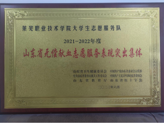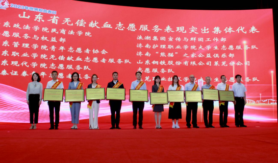 6月14日上午,在第20个世界献血者日到来之际,省卫生健康委员会等部门举办山东省2023年世界无偿献血者日宣传活动,对我省无偿献血先进单位和个人进行表彰鼓励。学校大学生志愿服务队被授予2021-2022年度“山东省无偿献血志愿服务表现突出集体”。
