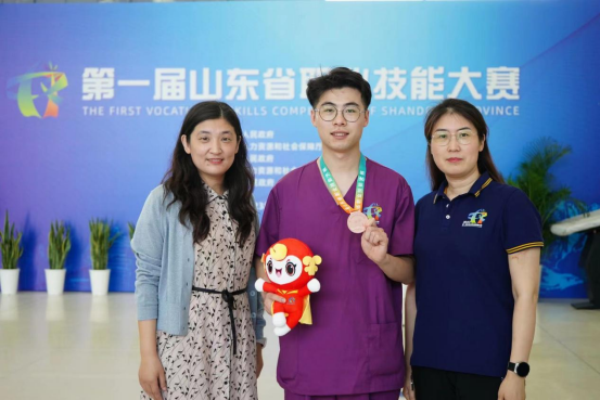6月16日,由山东省人民政府主办,山东省人力资源和社会保障厅、青岛市人民政府承办的第一届山东省职业技能大赛在青岛市举办,我校医学技术与护理系选手李政阳凭借精湛的专业技能和奋勇争先的竞赛精神在健康和社会照护项目中获得铜牌。