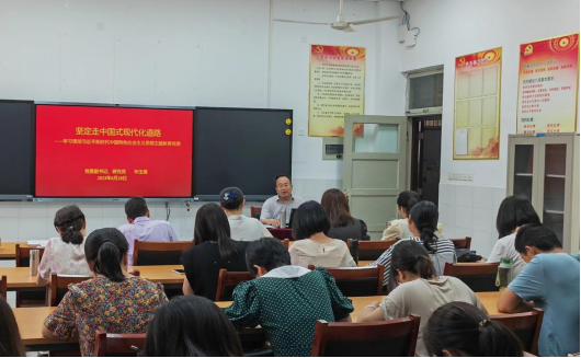 根据学校学习贯彻习近平新时代中国特色社会主义思想主题教育工作安排,6月28日下午,党委副书记毕玉海到商务管理系讲授《坚定走中国式现代化道路》专题党课,全系党员认真聆听党课。