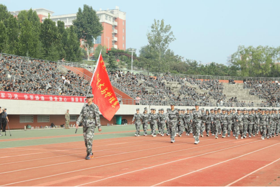 闭营仪式现场,新生们以挺拔的身姿、整齐的步伐完成分列式展示,每一个动作都凝聚着数日训练的汗水,尽显青春朝气与昂扬风貌。