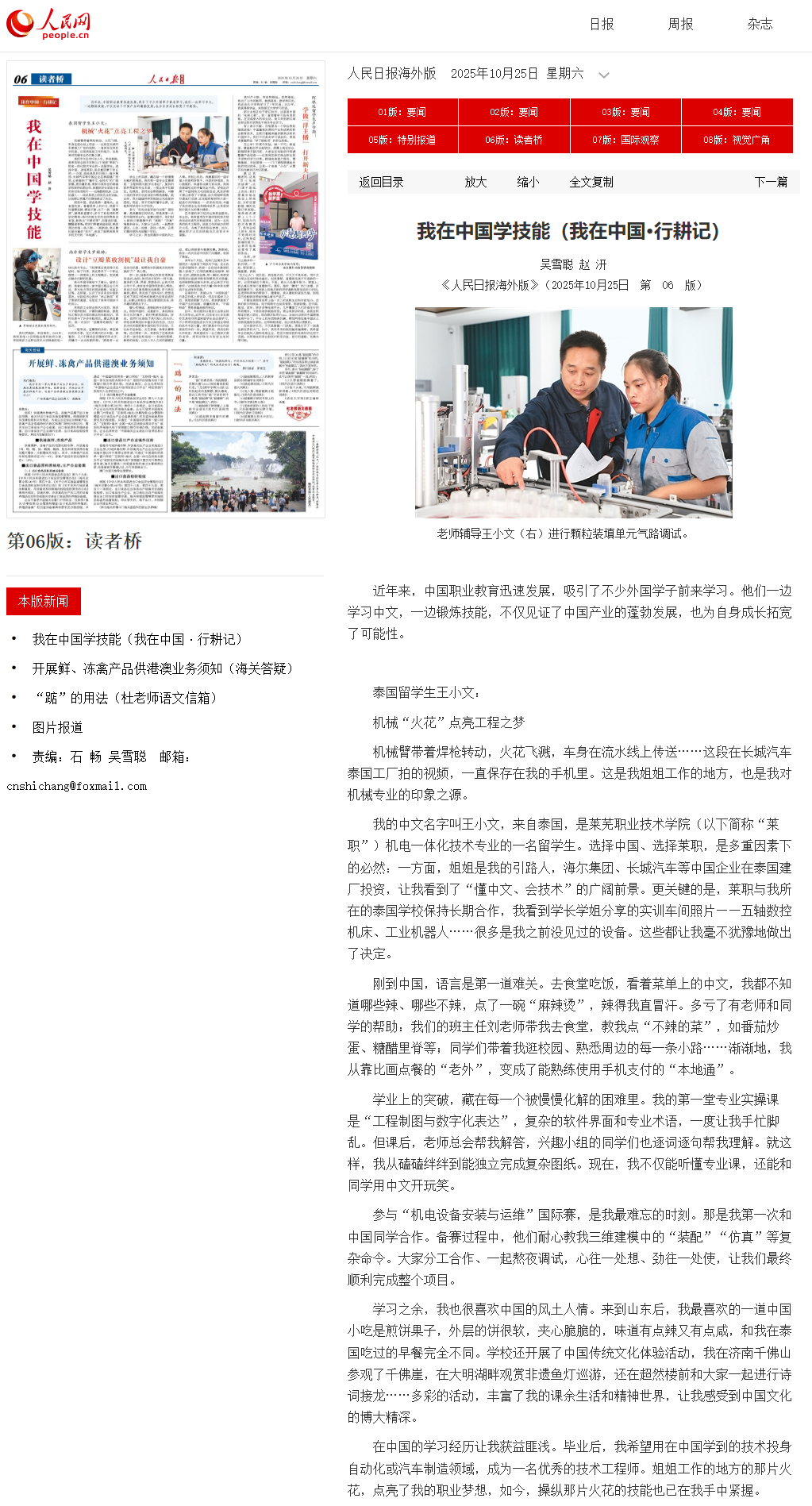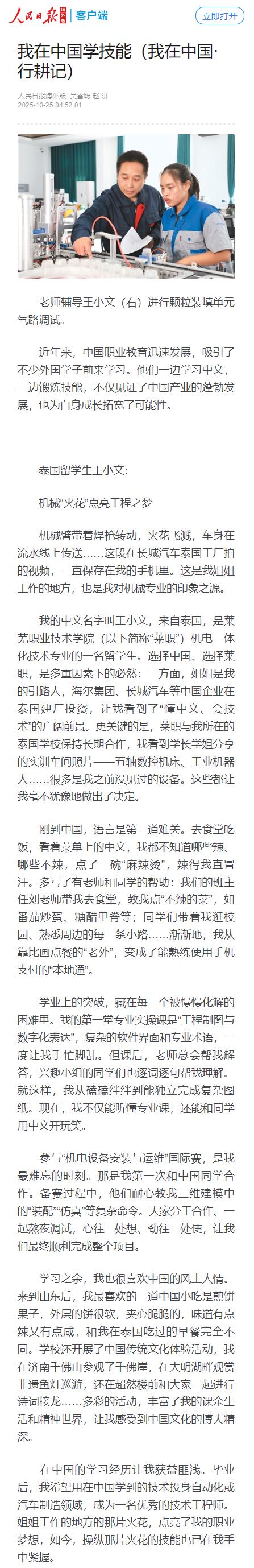 有人表示不解:为啥要去一个职业院校继续进修?中国蓬勃发展的产业和成熟的职业教育体系,正吸引着越来越多像我这样的外国学子。我们不仅是来学习语言的,更是来掌握那些“学了就能用”的职业技能。