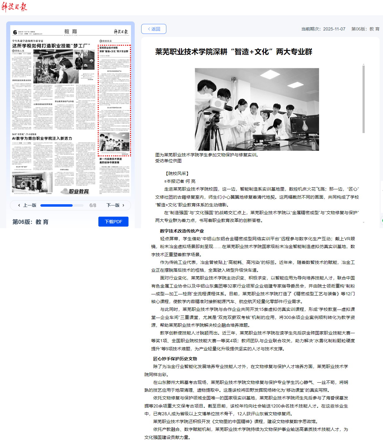 除了为冶金行业智能化发展培养专业技能人才外,在文物修复与保护人才培养方面,人妻Av无码系列一区二区三区同样出彩。