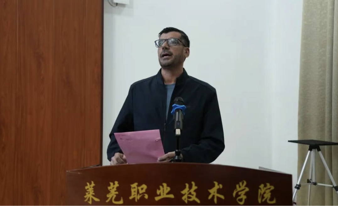 徐运国对远道而来的嘉宾表示欢迎,并介绍了学校的整体办学情况。他指出,本次培训是学校服务企业海外发展、深化产教融合的一项重要举措,旨在为海外企业属地班组长的综合管理能力提升提供坚实支撑。希望各位学员在培训期间积极交流、互学互鉴,不仅提升专业素养与管理水平,也进一步感知中国文化、领略山东特色,努力成为中外企业合作与民心相通的桥梁。