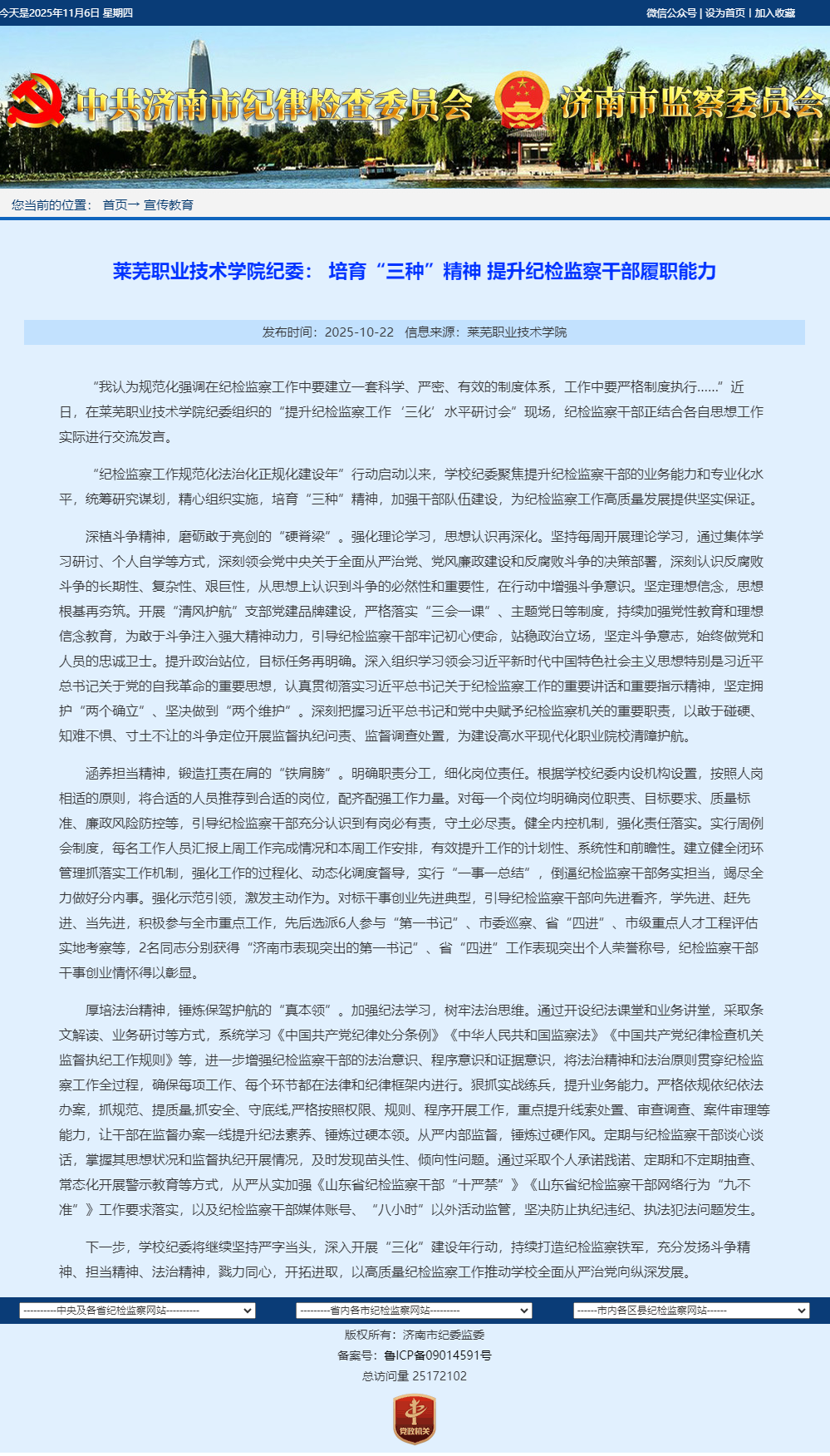 “纪检监察工作规范化法治化正规化建设年”行动启动以来,学校纪委聚焦提升纪检监察干部的业务能力和专业化水平,统筹研究谋划,精心组织实施,培育“三种”精神,加强干部队伍建设,为纪检监察工作高质量发展提供坚实保证。