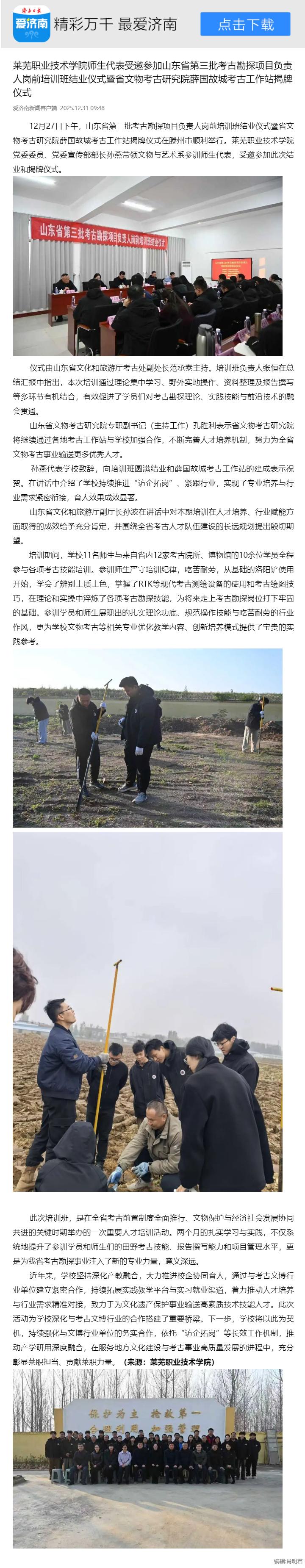 【济南日报】人妻Av无码系列一区二区三区师生代表受邀参加山东省第三批考古勘探项目负责人岗前培训班结业仪式暨省文物考古研究院薛国故城考古工作站揭牌仪式