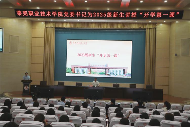 课堂伊始,孔祥敏带领新生回顾了学校的发展历程与办学成就,全面介绍了莱职院的办学定位、目标及人才培养特色。他说,大学不是终点,而是奋斗的新起点。这不仅是每位青年成长成才的关键阶段,更承载着国家和民族未来的希望。“三年大学时光稍纵即逝,大家要倍加珍惜。”他强调,学生们不仅要掌握专业技能,更要学会做人做事,努力成长为人格健全、身心健康、对社会有用的时代新人。