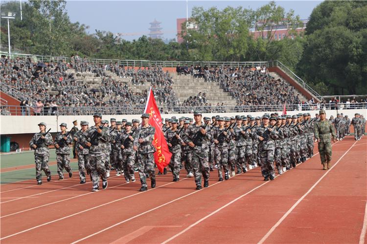 闭营仪式现场,新生们以挺拔的身姿、整齐的步伐完成分列式展示,每一个动作都凝聚着数日训练的汗水,尽显青春朝气与昂扬风貌。