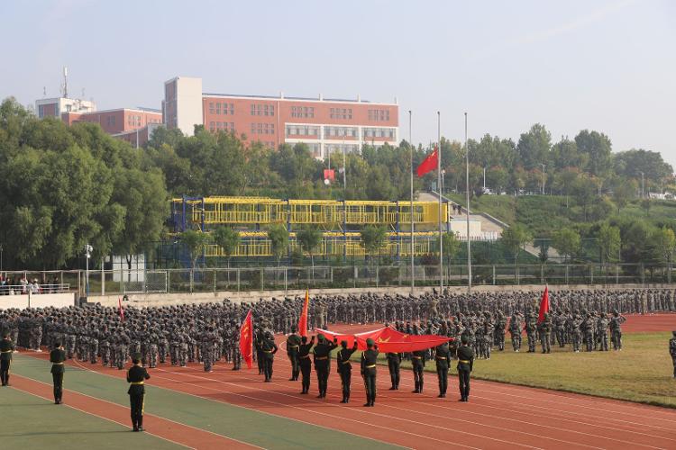 在雄壮的国歌声中,全体起立,面向国旗,行注目礼,闭营仪式正式开始,这标志着为期两周的军训即将结束。