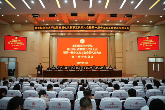 3 月 11 日下午,学校第三届七次教职工代表大会暨第一届十九次工会会员代表大会在图信报告厅召开。校领导徐运国、杨洪涛、李允实、贾友军、周美栋、任清华、张静出席会议。教职工代表、工会会员代表齐聚一堂,共商学校发展大计,共谋改革创新良策。会议由党委副书记李允实主持。